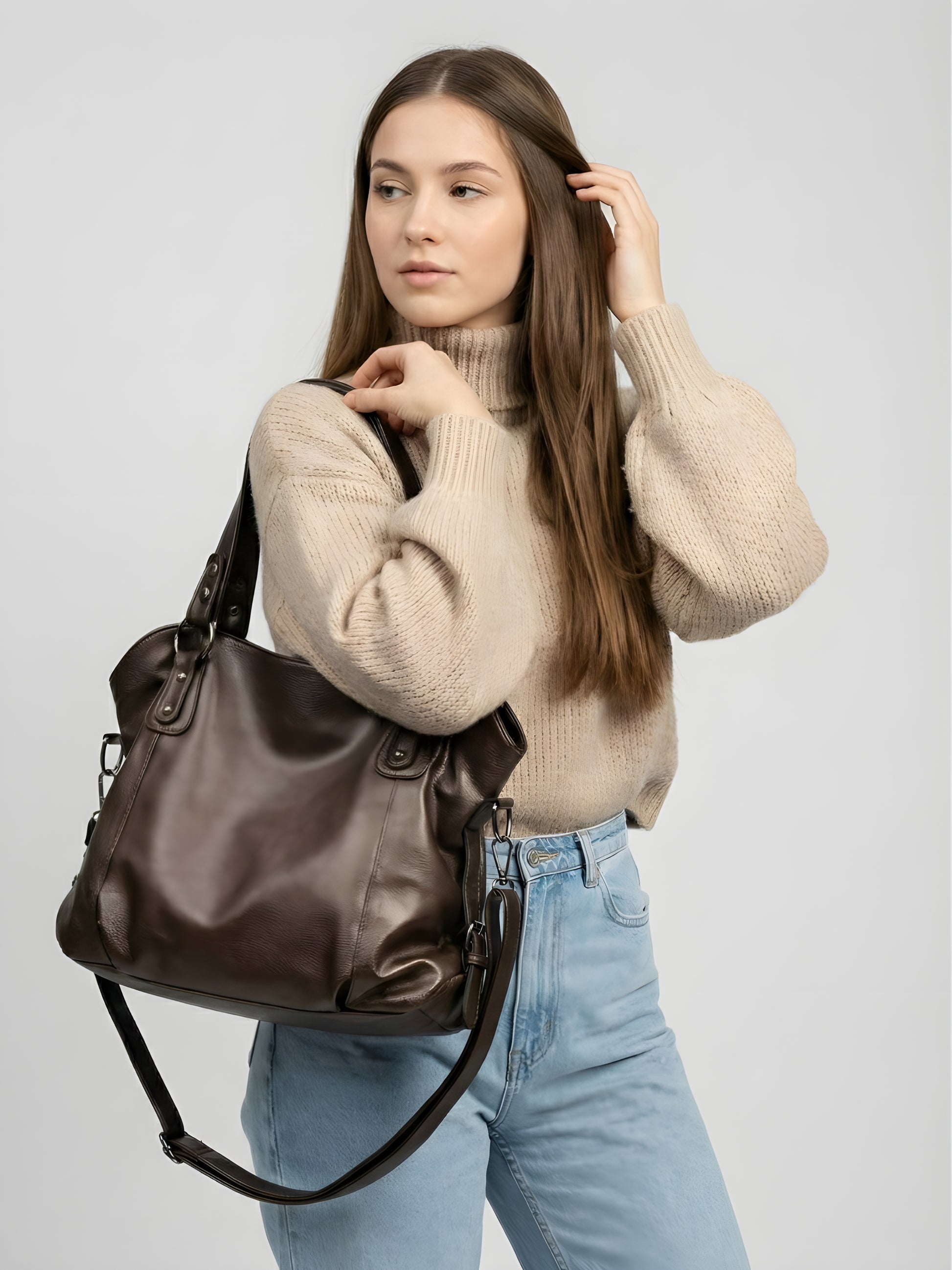 Our bags are crafted from high-grade vegan leather designed to offer the elegance of traditional leather while outperforming it in everyday life. Waterproof, ultra-light, scratch-resistant, and structurally stable, it keeps its shape and finish through rain, coffee splashes, commutes, and the constant movement of modern routines. The material remains smooth and pristine without swelling or discoloration, making it ideal for women who need a refined yet durable companion.